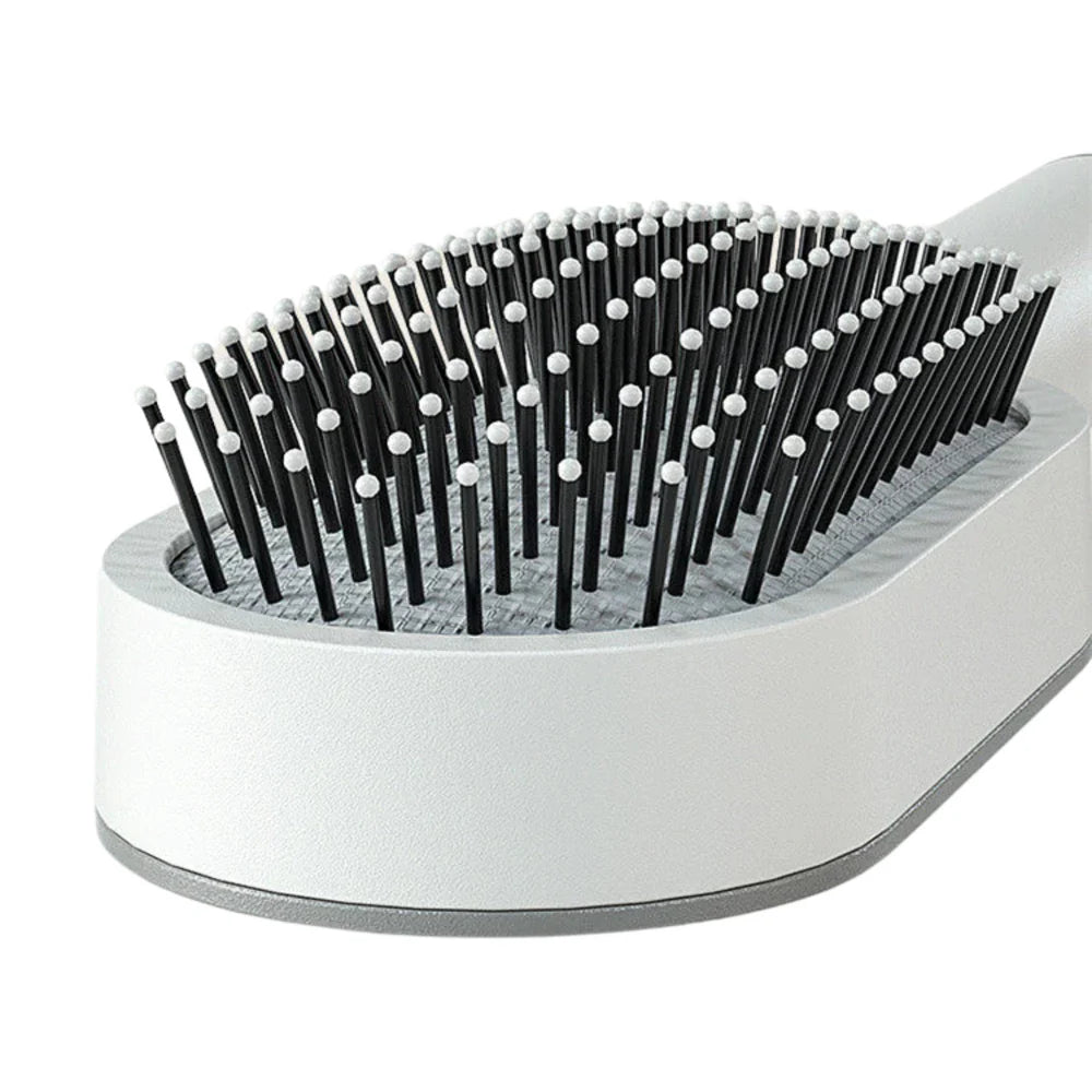 Die Bürste ist mit einer innovativen Mechanik ausgestattet, die Haare auf Knopfdruck entfernt. Ein Druck genügt, und die Haare lösen sich automatisch, sauber, schnell und mühelos.